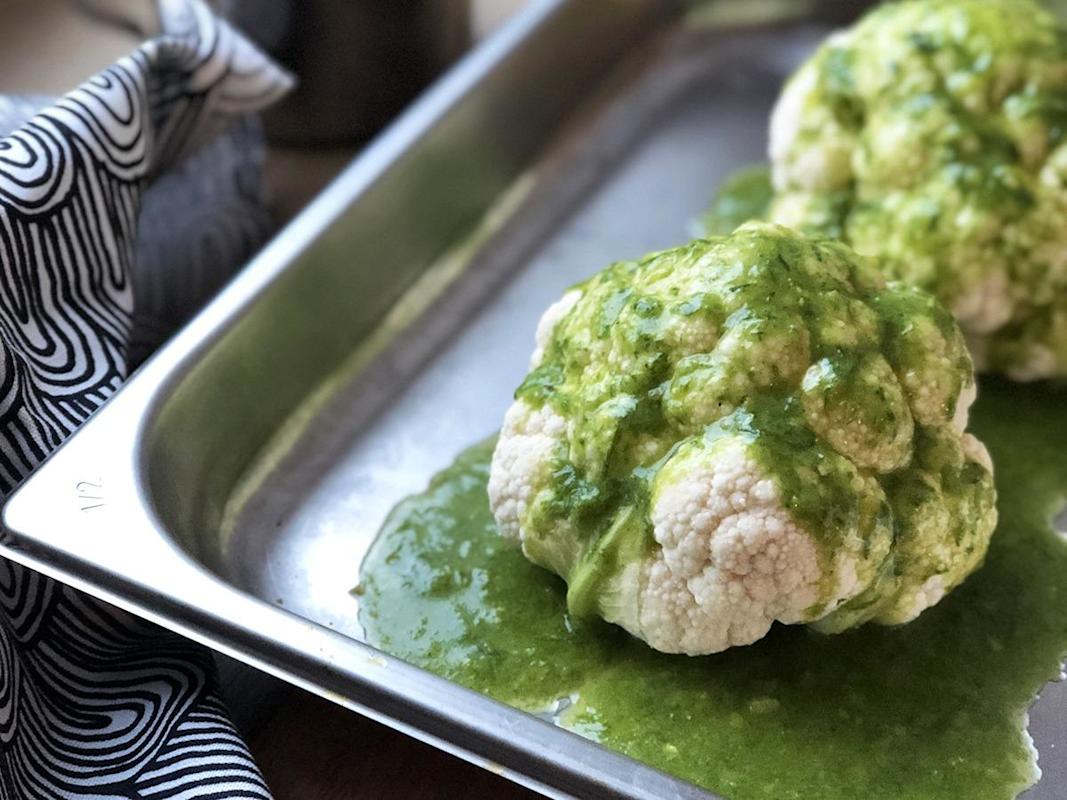 Paista kukkakaali uunissa n 25 minuuttia kunnes se on saanut väriä ja pehmennyt.