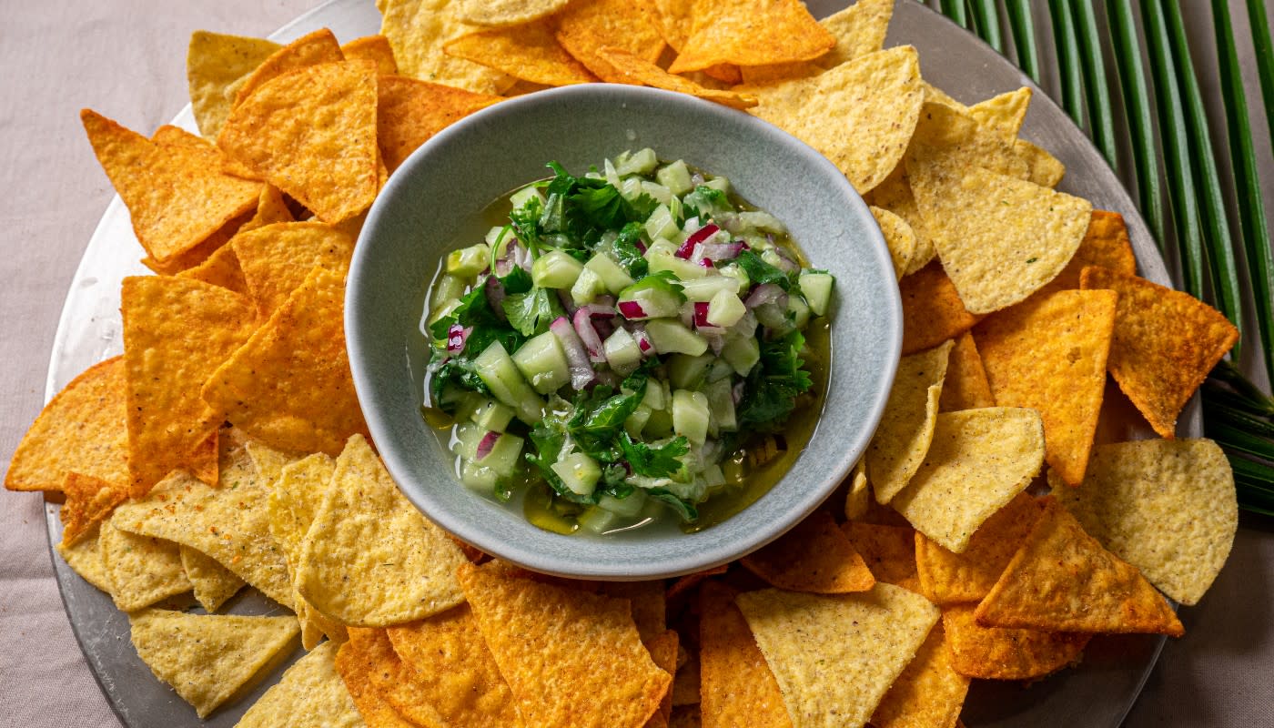Kurkkusalsaa ja nachoja