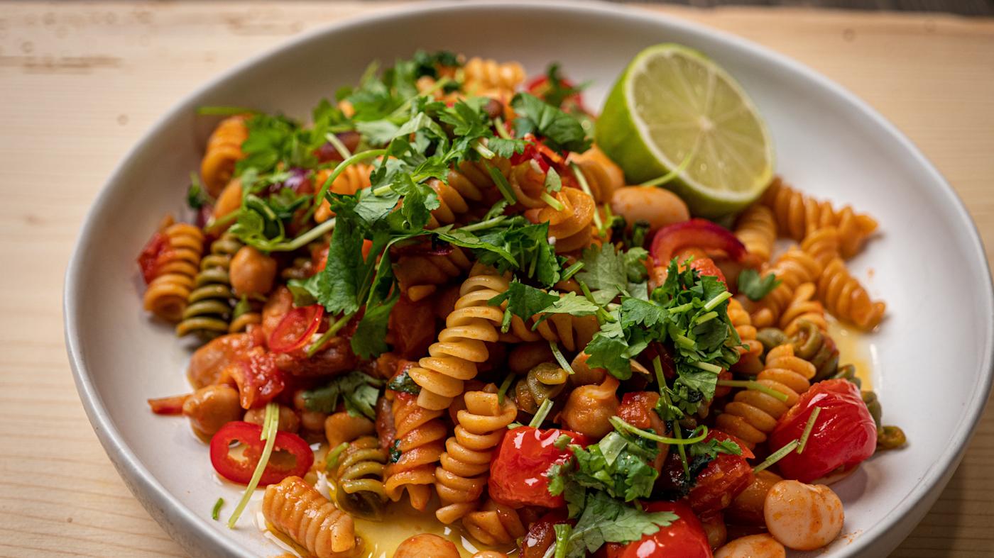 Blanda ihop såsen med pastan.