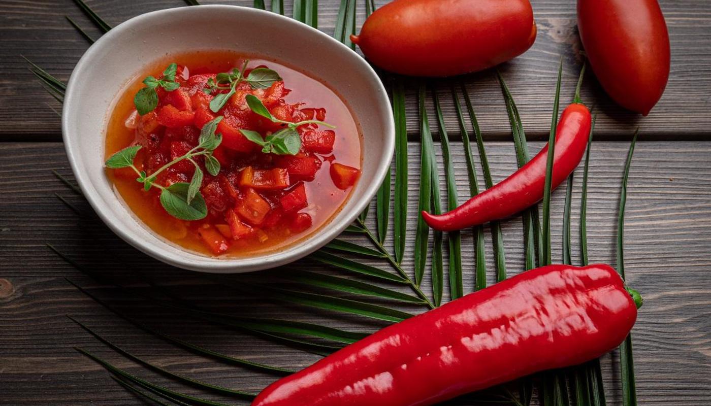 - Skär paprikorna, tomaterna, röda chilin och vitlöksklyftorna i små bitar.