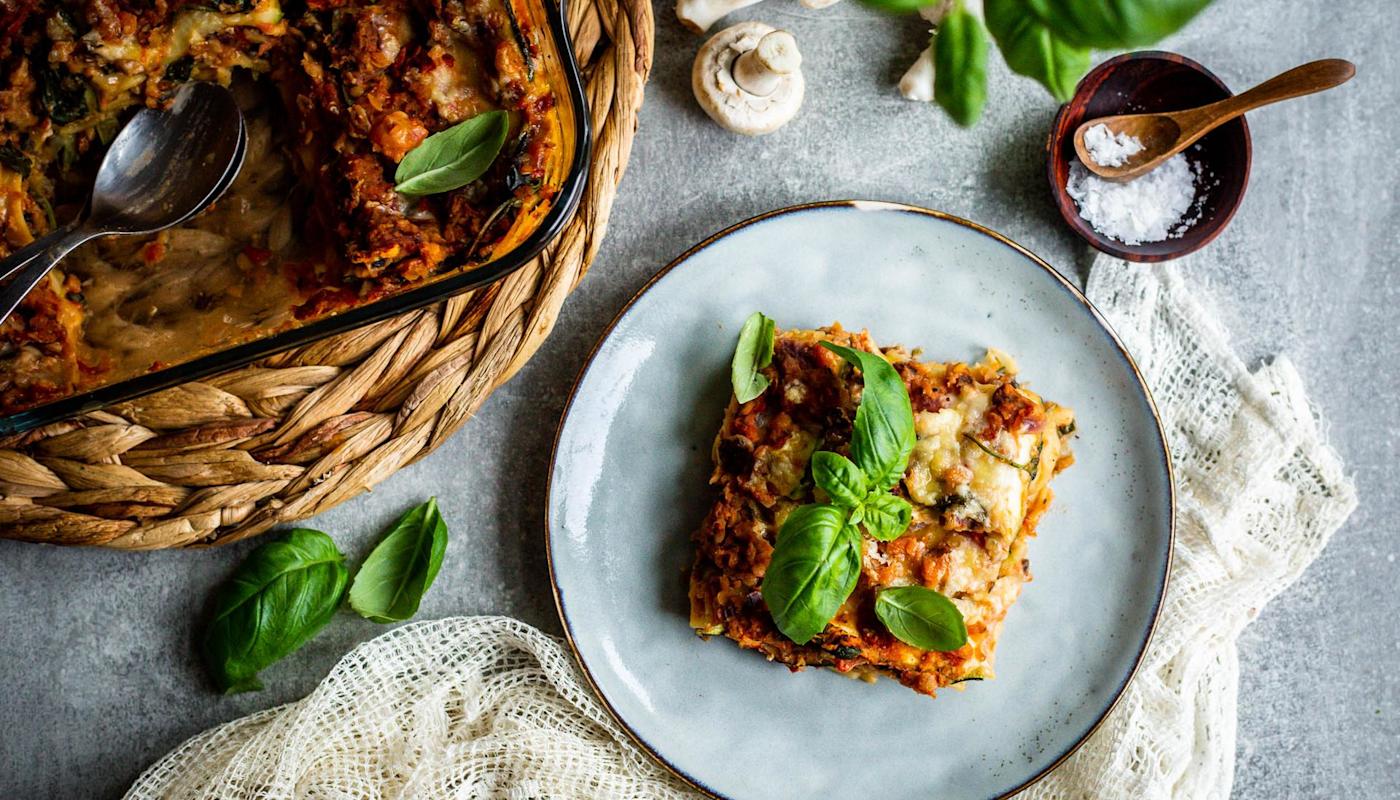 Med röda linser och svamp blir lasagnen proteinrik, osten och crème fraichen gör den härligt krämig.