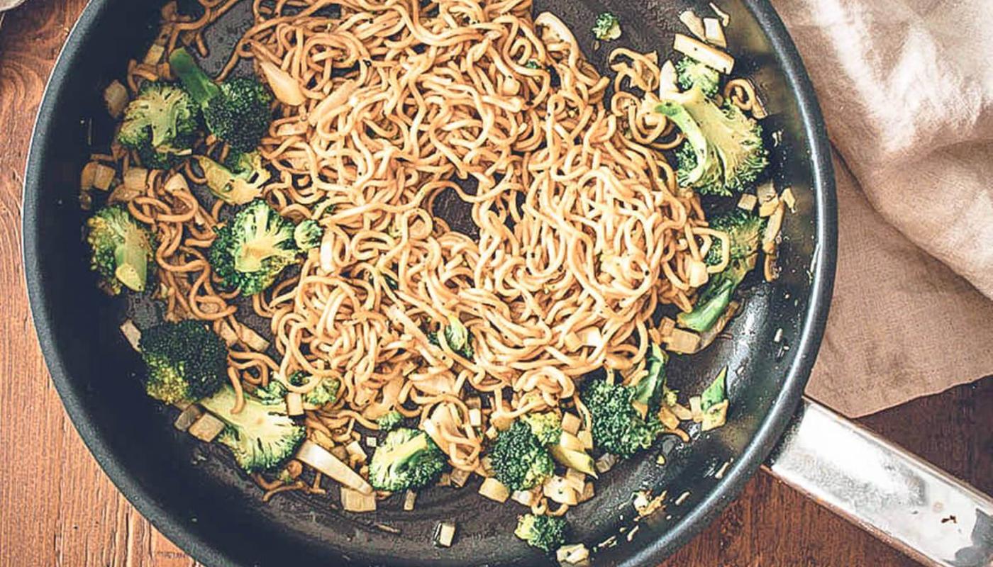 - Valuta nuudelit ja lisää ne pannulle, sekoita