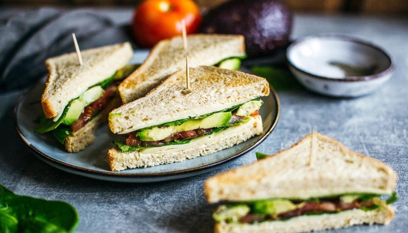 - Laita leipäviipaleet päälle kansiksi ja leikkaa leivät kolmioiksi.