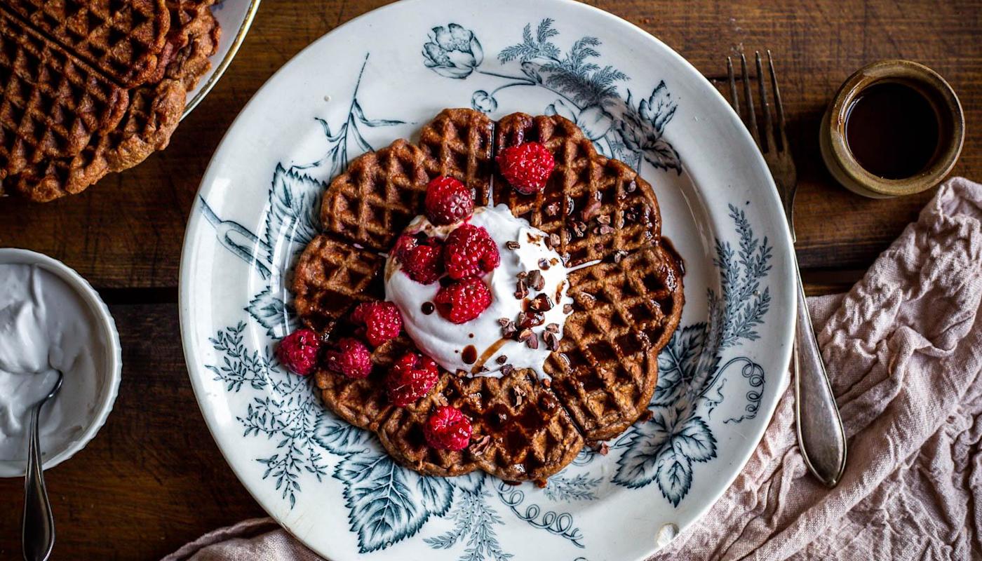 Paista vohveliraudassa noin 1 rkl kookosöljyn kera per vohveli.