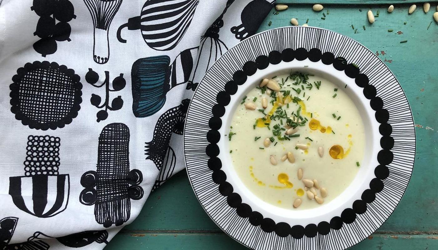 Tämä kukkakaalikeitto on samettisen pehmeä ja mieto versio, soveltuu hyvin lämmittäväksi kevytlounaaksi tai miksi ei alkuun hienostuneemman illallisen yhteydessä. Sitruuna puristetaan juuri ennen sekoittamista, tämä jotta se jättäisi raikkaan, kirpeän maun eikä leikkaisi.
