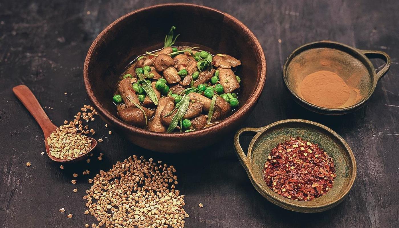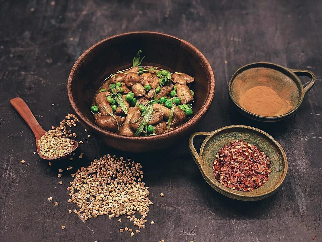 Lakritsilla ja chilillä maustettuja villisieniä ja tattaria