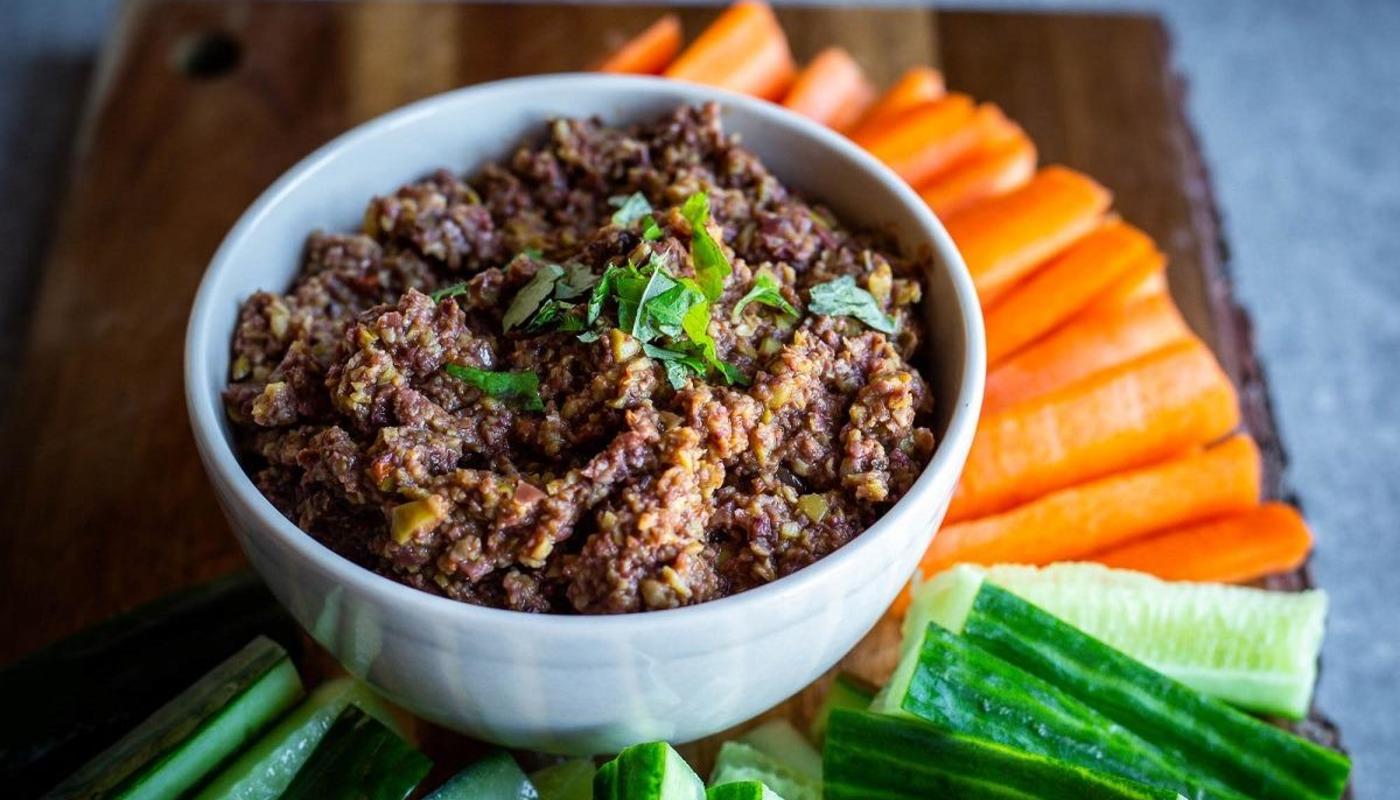Maistuva tahna oliiveilla ja aurinkokuivatuilla tomaateilla sopii hyvin esimerkiksi lisukkeeksi sekä vihanneksille tai suolakekseille.