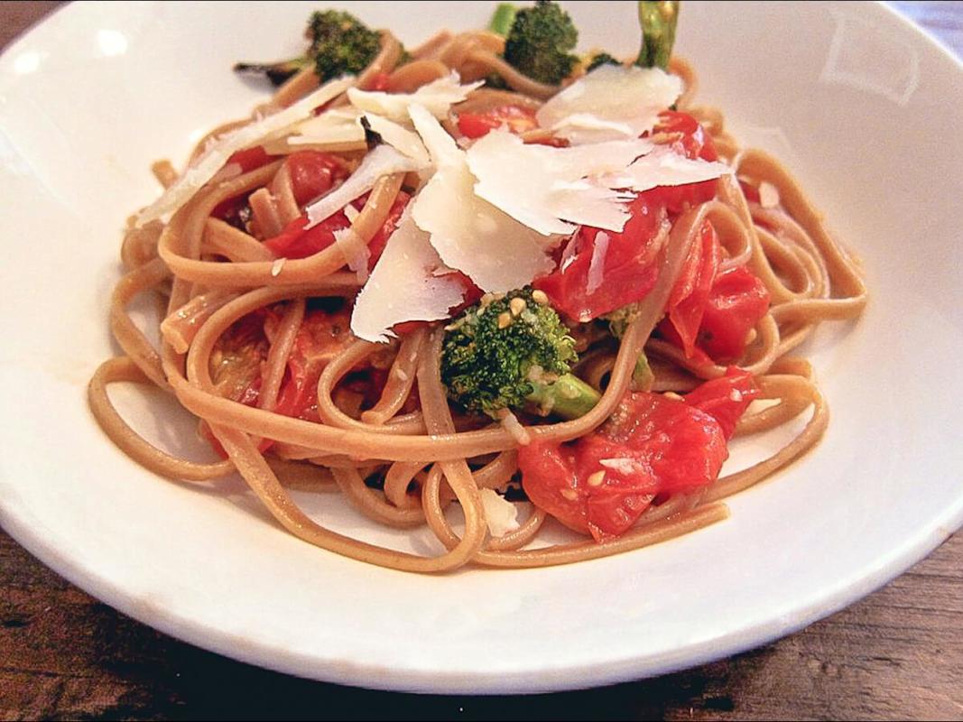 Putsaa ja leikkaa parsakaali pieniksi suupaloiksi. Sekoita parsakaali tomaattien joukkoon. Mausta suolalla, pippurilla, lorauksella sitruunamehua sekä oliiviöljyllä.