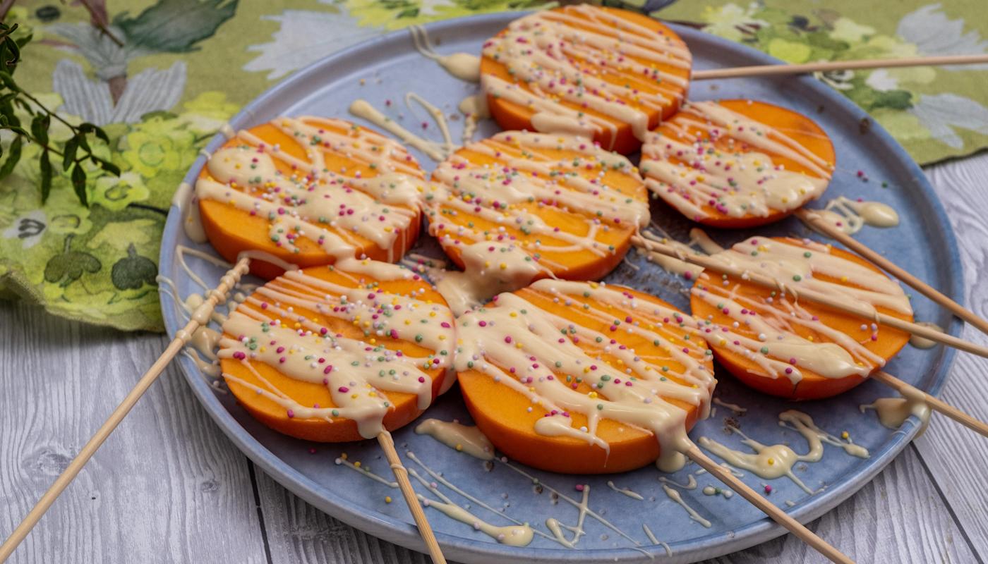 - Tee persimontikkareihin valkosuklaasta raitoja.