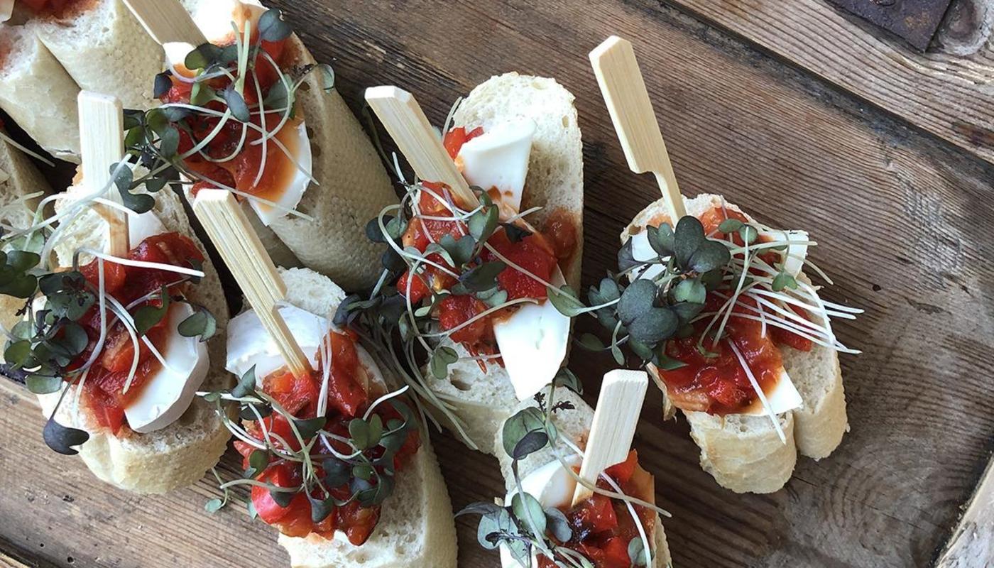 - Jaa vuohenjuusto jokaiselle patonkipalalle ja lisää vielä reilu lusikallinen tomaatti-paprikasalsaa.