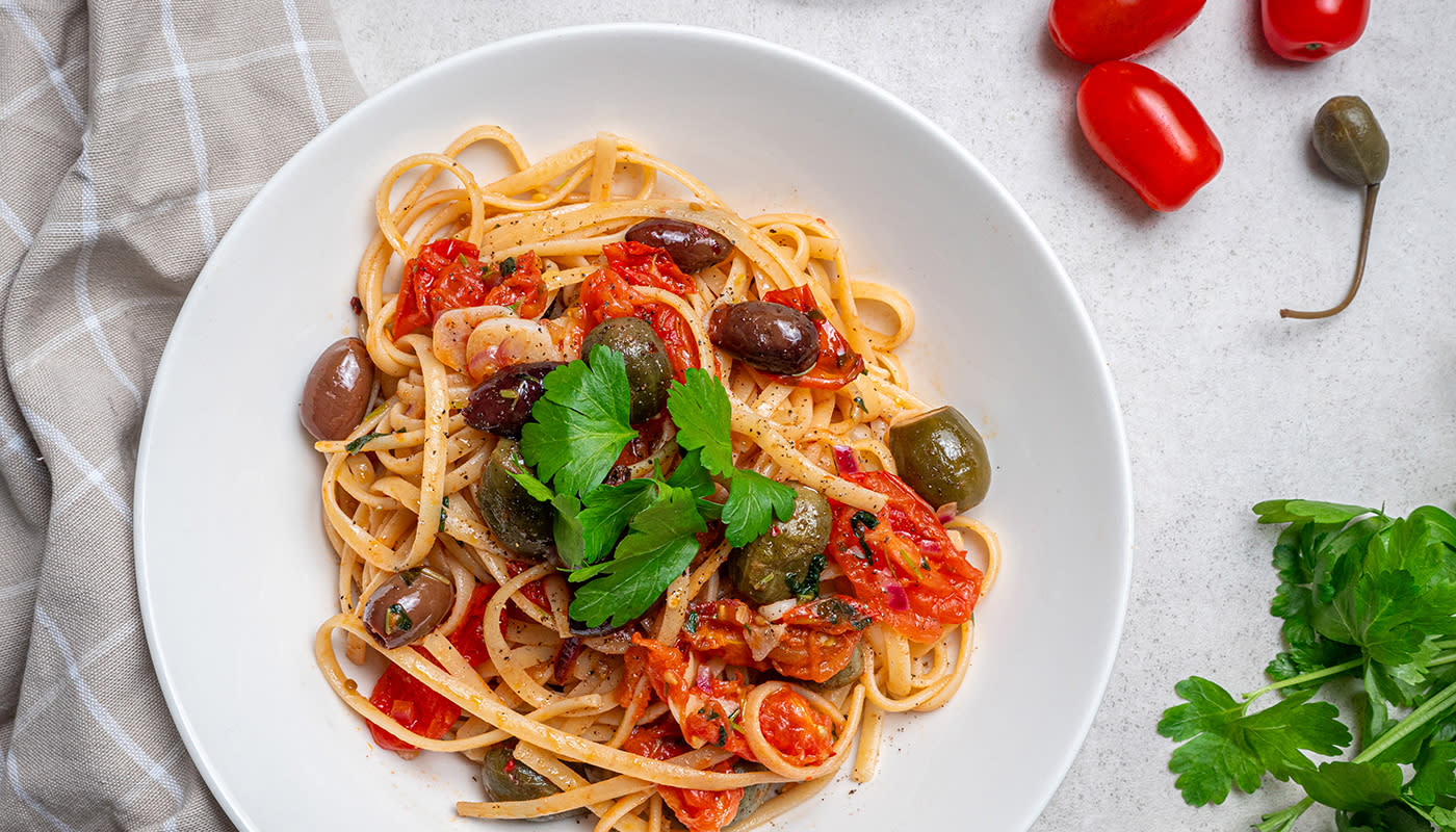- Lisää lopuksi kaprikset ja kalamata oliivit ja mausta suolalla ja mustapippurilla.