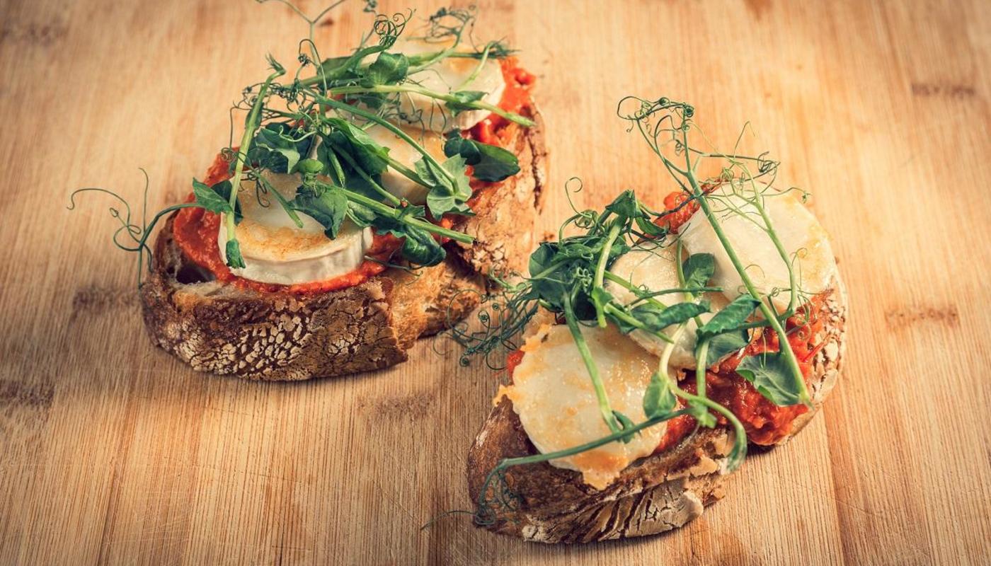 - Paahda leivät ja vuohenjuusto pannulla ja kokoa annos.