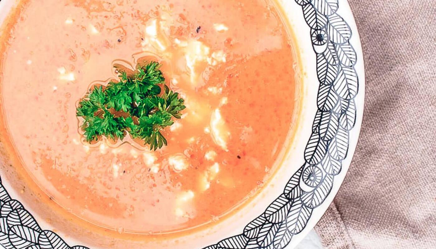 - Portionera soppan på tallrikar och smula sönder lite fetaost ovanpå, dekorera med persilja. Servera soppan het med varmt nybakat bröd.