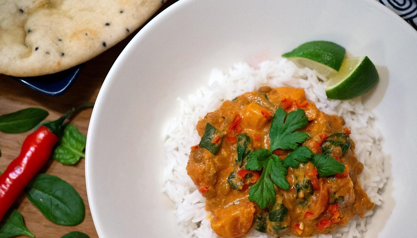 Vegaaninen bataatti-linssicurry tomaatilla ja pinaatilla on täyttävä arkiruoka, joka lämmittää mukavasti talvipäivänä. Tulisuutta on helppo säädellä chilin ja maustetahnojen määrällä.