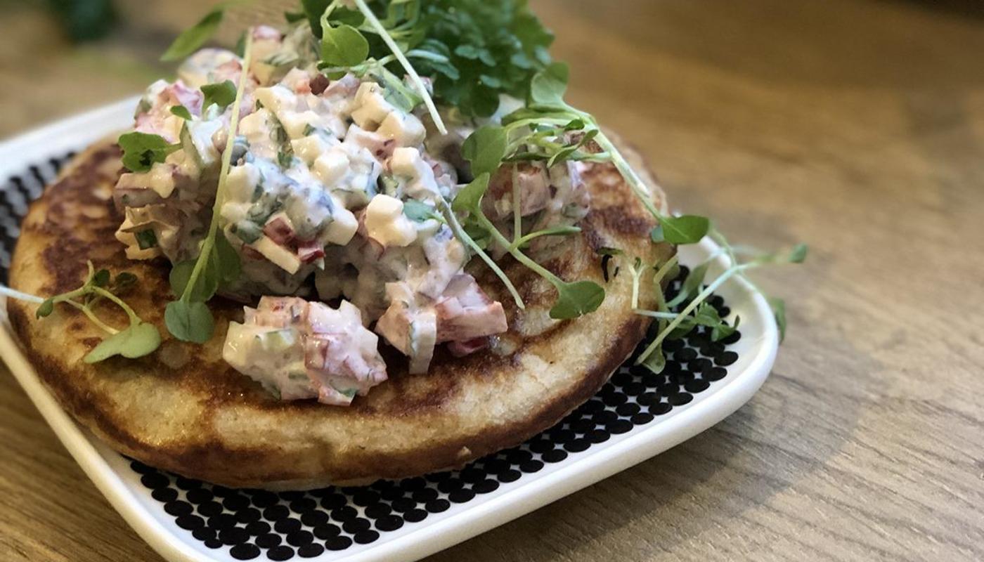 - Servera blinierna nystekta tillsammans med röran, toppa gärna med krispiga groddar eller med salladsskott.