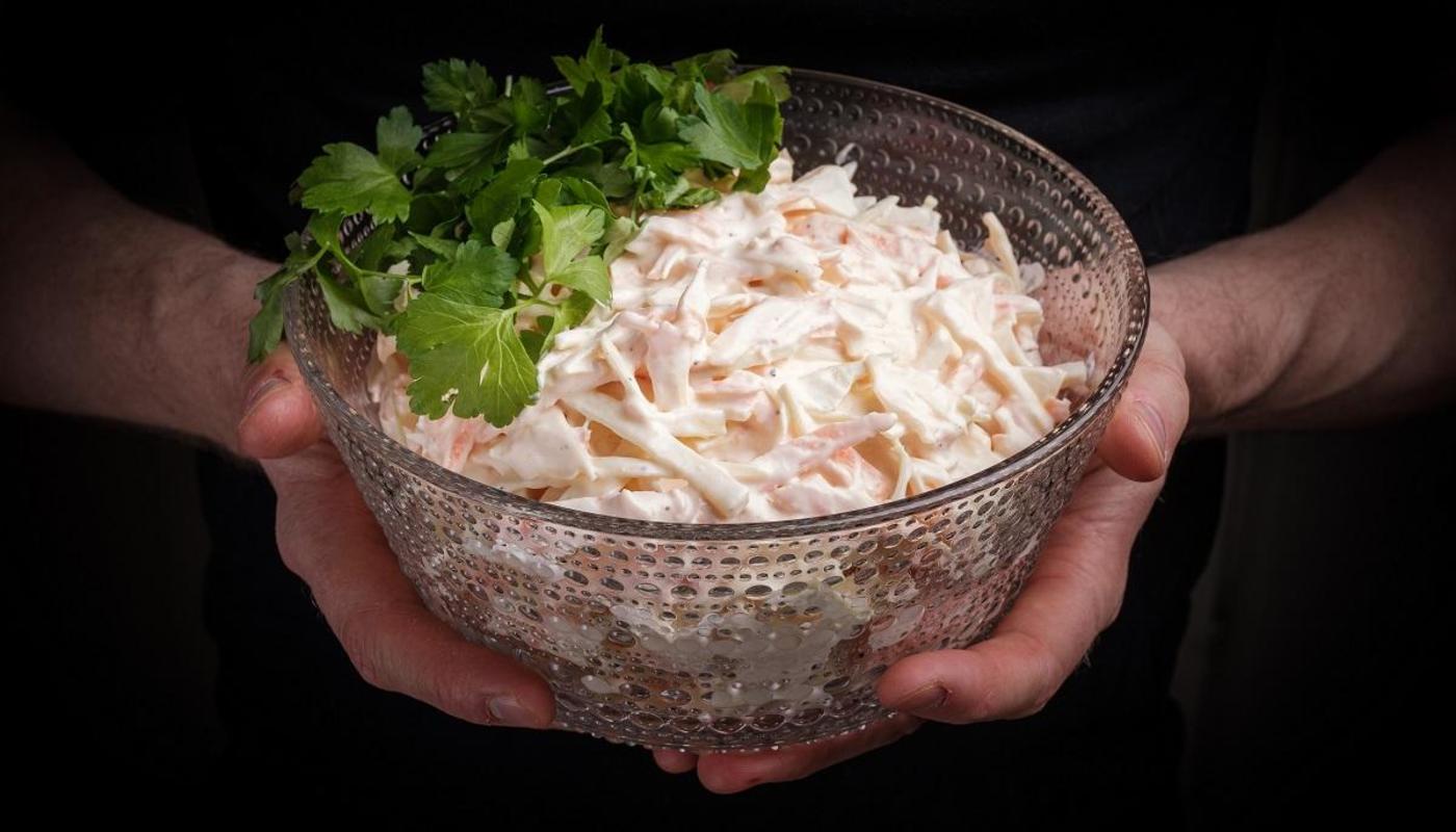 - Massera strimlorna med socker, spritättika och salt enligt egen smak.