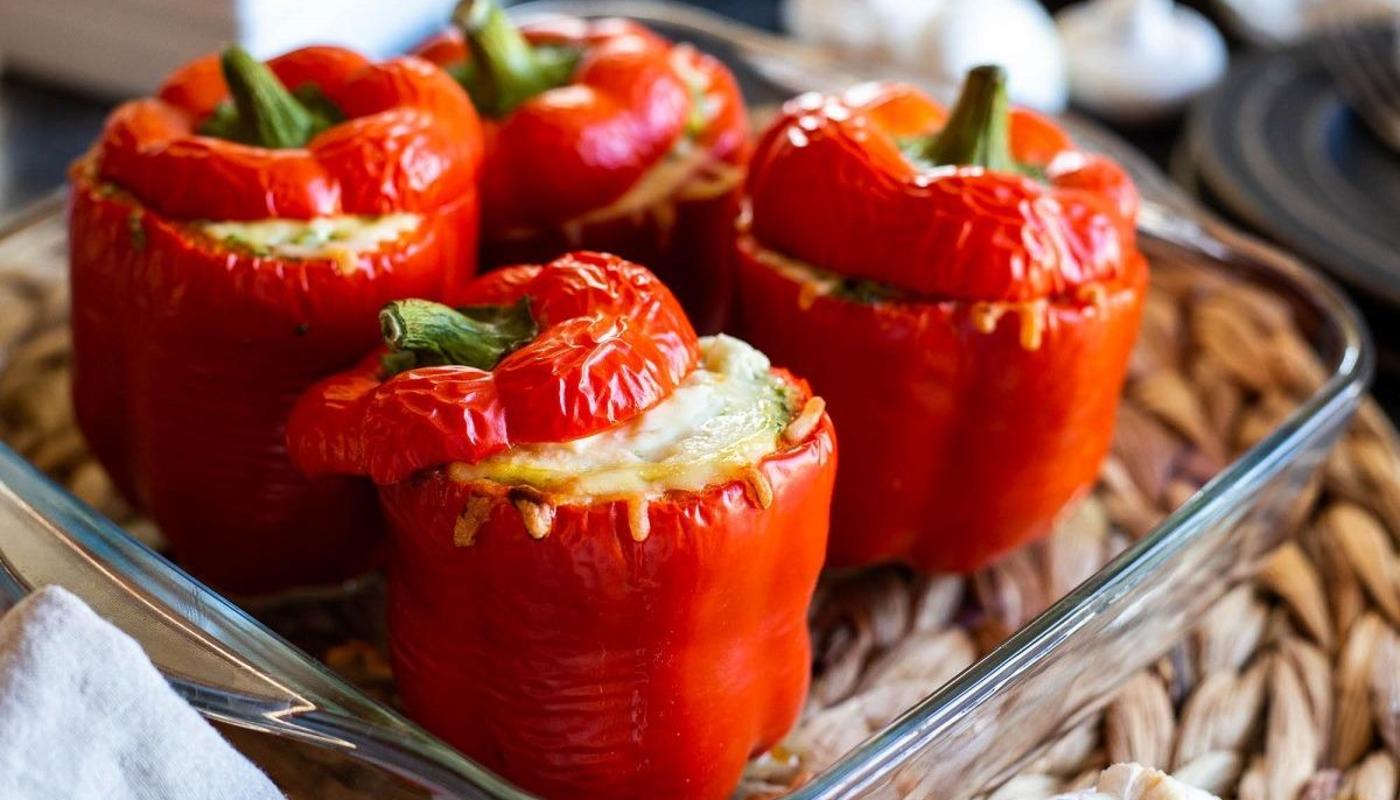 - Lägg på “locket” på paprikorna och rosta i ugnen i 20 minuter.