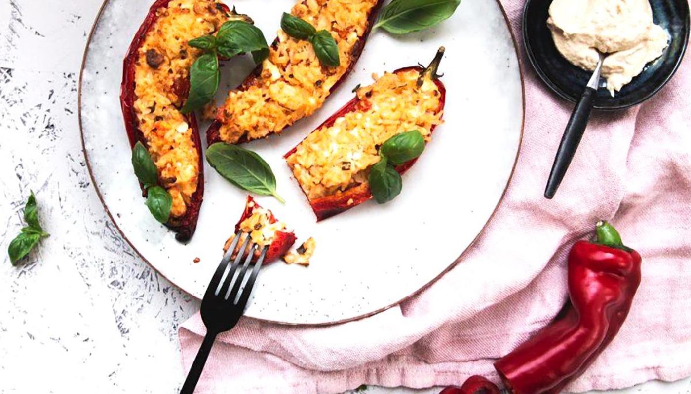 - Fyll paprikorna med ris-hummusblandningen och grädda i 200 gradig ugn i ca 30 minuter.
