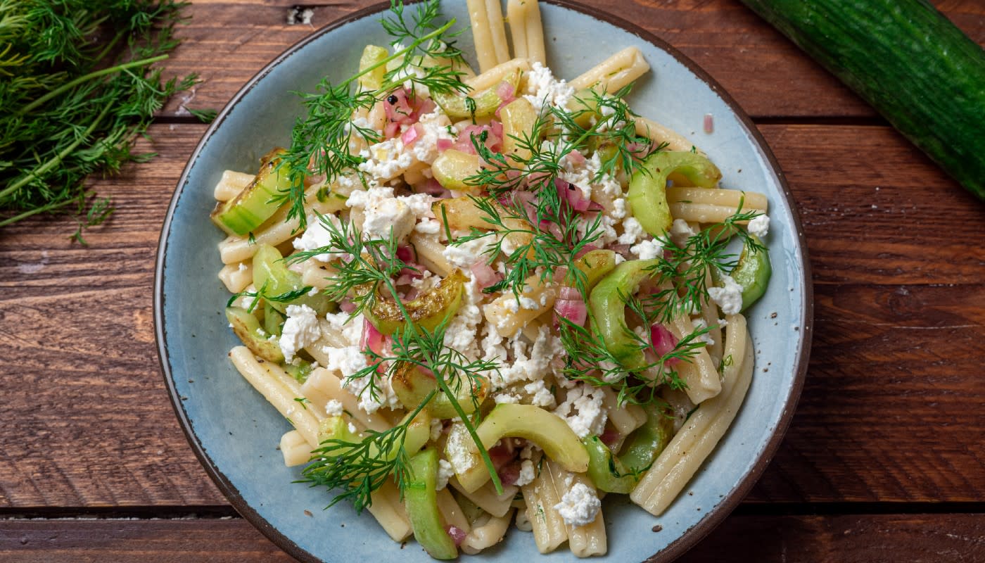 En pastarätt som smakar såväl kall som varm. Gurk-fetapasta är en ypperlig rätt att ta med tex på piknik. Enkel, snabb och smakrik!