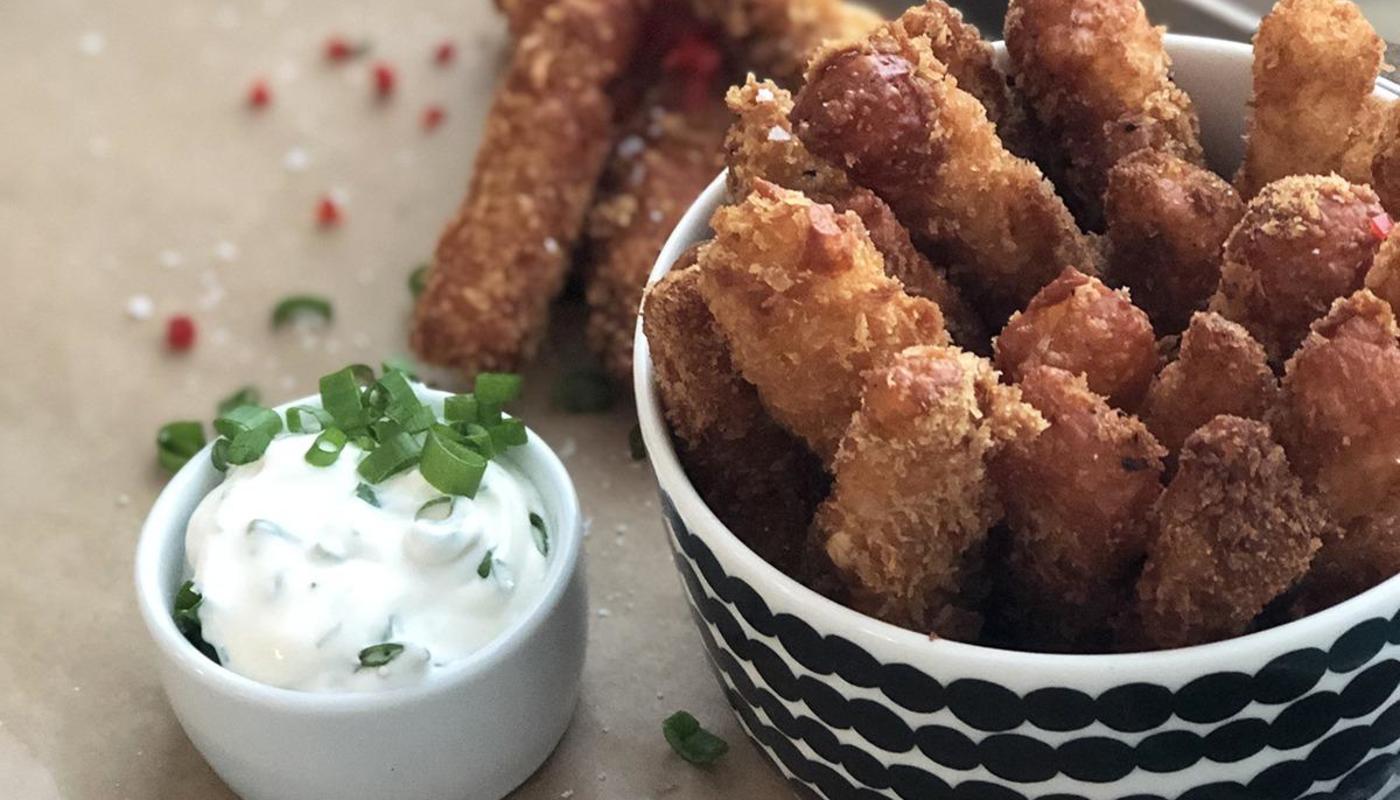 - Skär halloumin i ca 1 cm tjocka stavar.