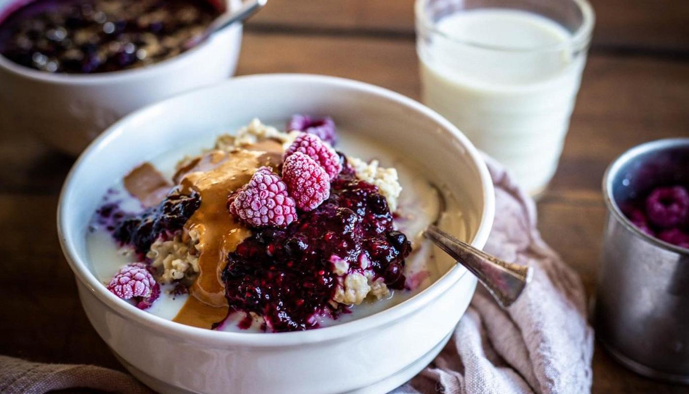 - Ät gröten med chiasylt och till exempel en klick jordnötssmör och en skvätt mjölk.
