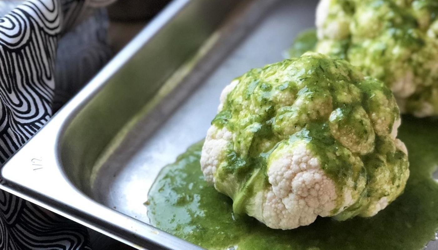 - Låt svalna en stund, skär i buketter och servera med babyspenat, oatgurtdressingen samt rostade pinjenötter.