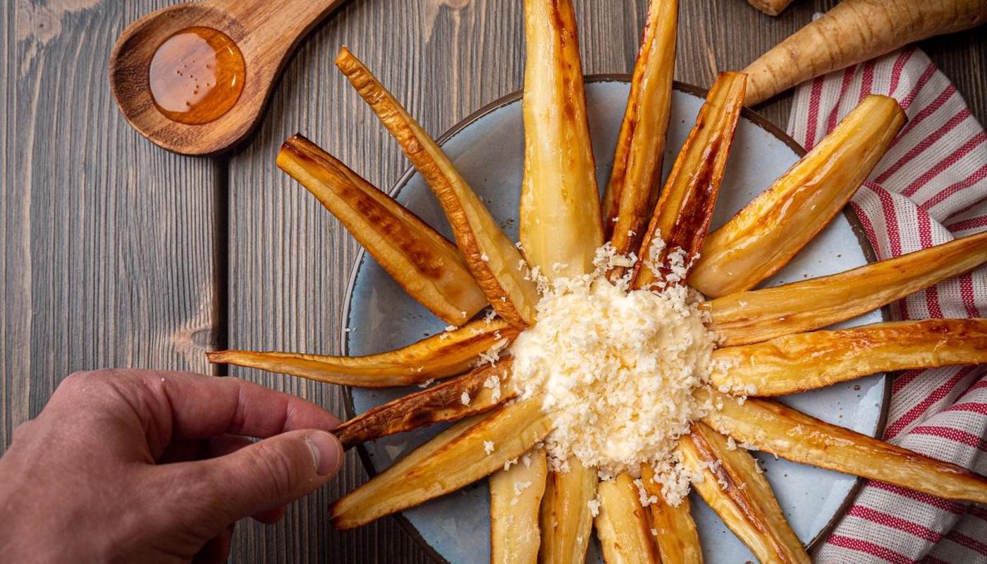 - Placera palsternackorna på en plåt med plåtpapper, grädda 15-20 minuter, tills de är mjuka och vackert bruna.