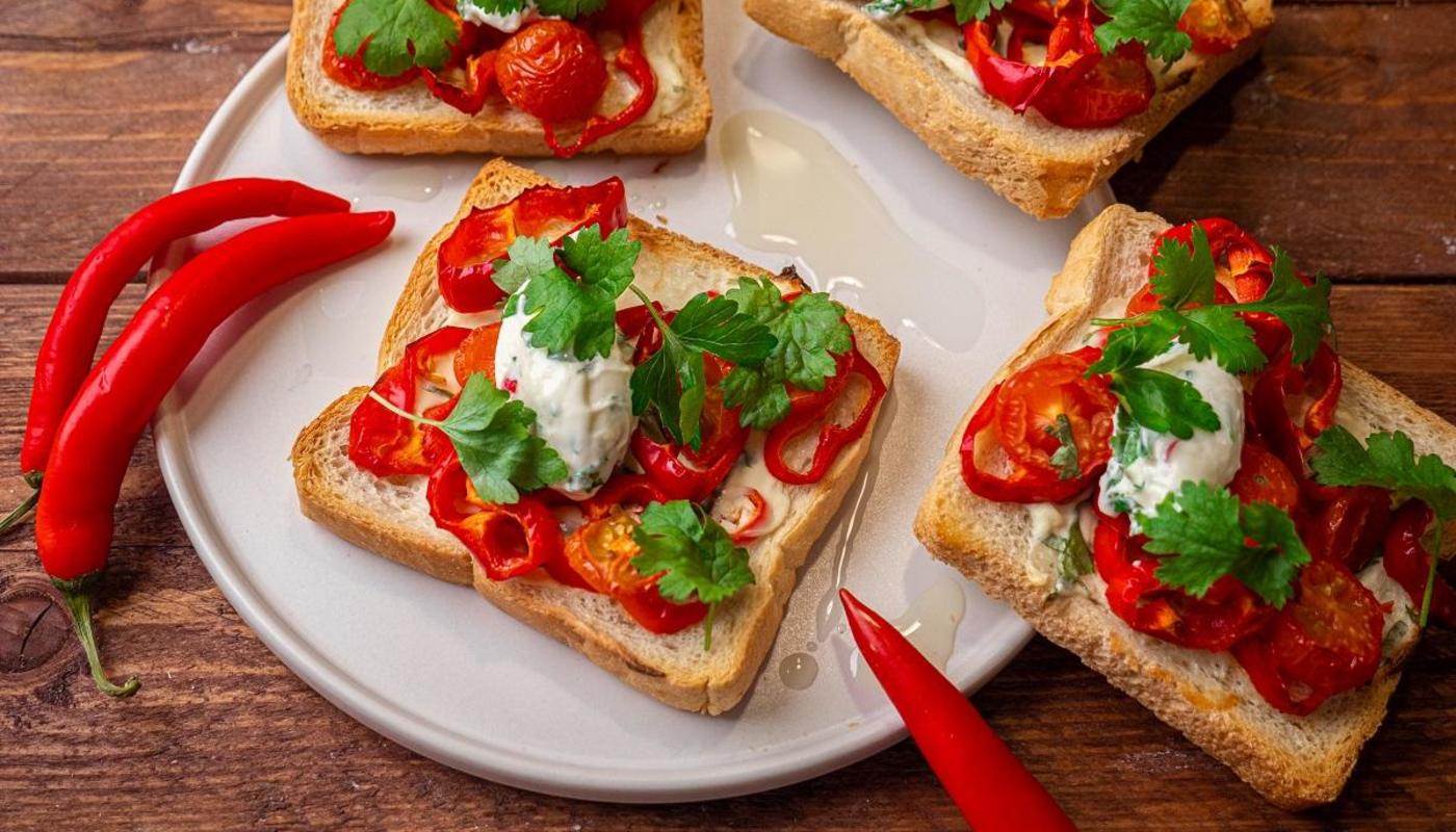 - Bred ut bröden på en plåt med bakplåtspapper och bre på chili-färskosten.