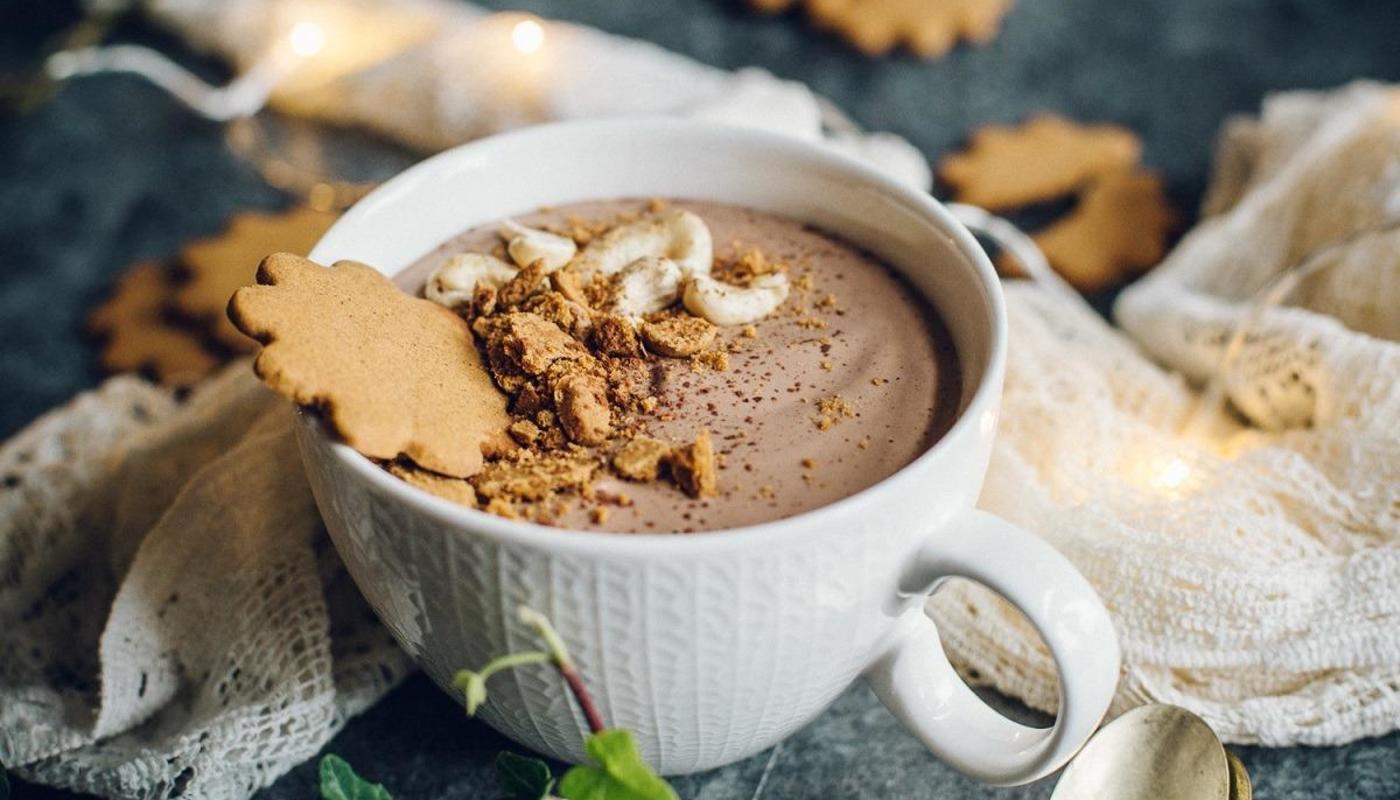- Häll upp i en skål och dekorera med pepparkaksbitar och cashewnötter.