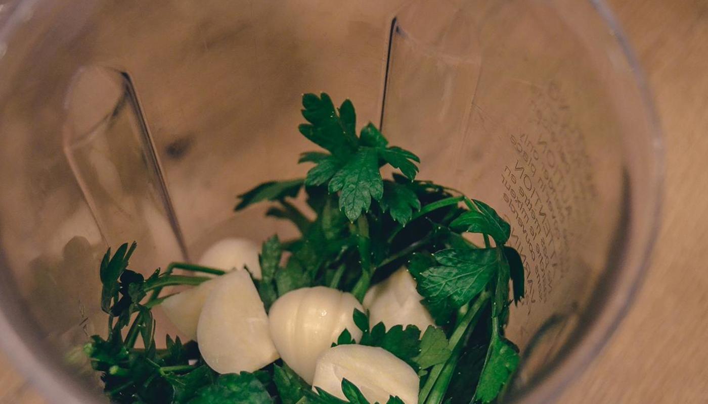 - Laita kaikki ainekset sauvasekoittinen kulhoon ja sekoita tasaiseksi. Öljy on aika vahva jos maistat sitä heti, joten anna seistä jääkaapissa muutaman tunnin ennen käyttöä.