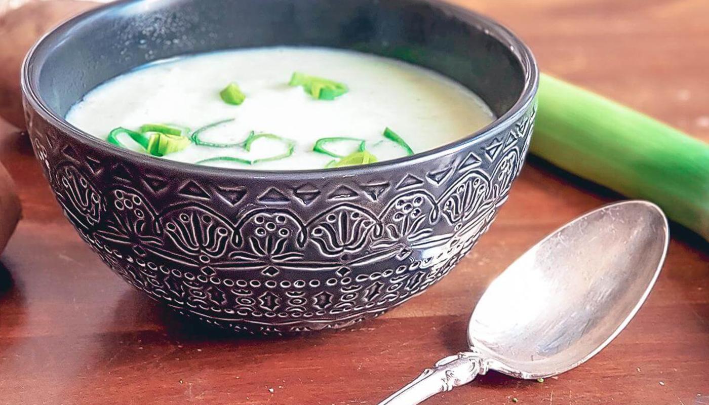 Tarjoa peruna-purjosipulikeitto tuoreen leivän kera.