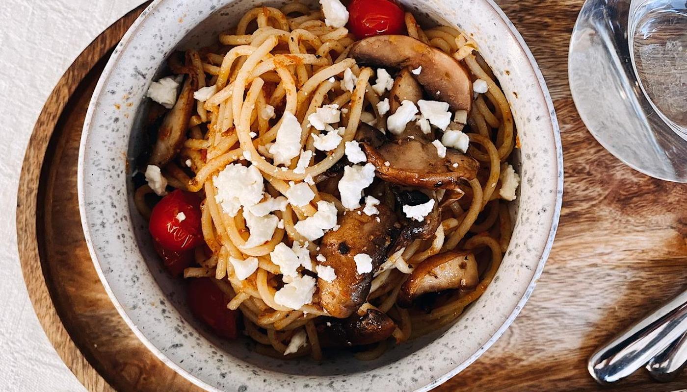 Herkullinen ja helppo pestolla höystetty sienipasta, joka vie kielen mennessään