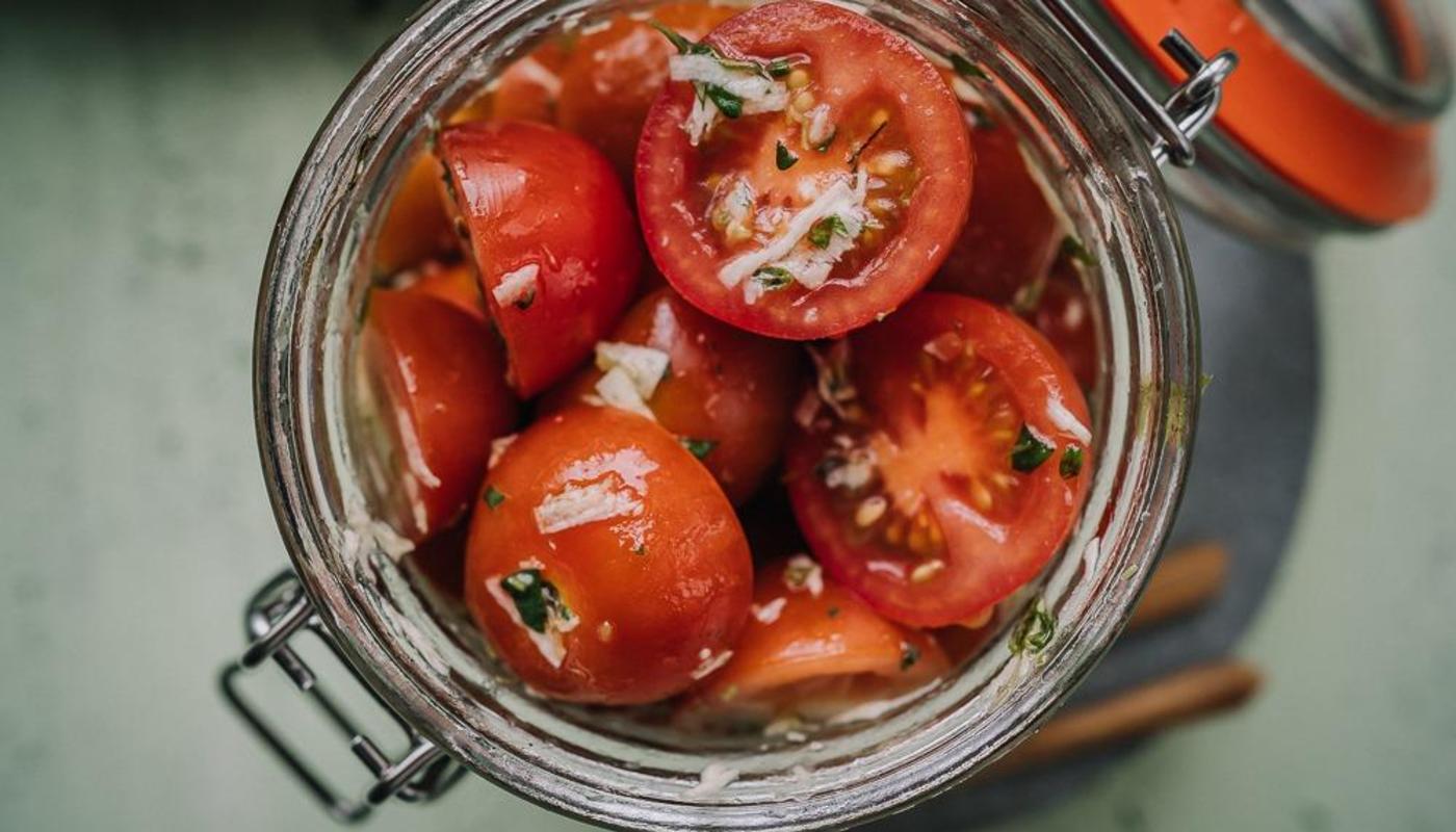 Piparjuurimarinoidut kirsikkatomaatit