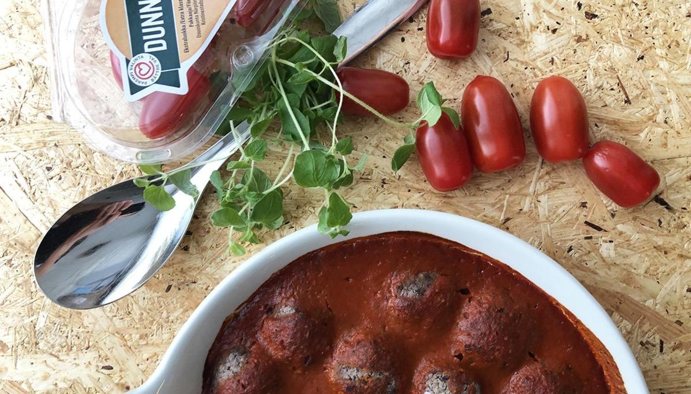 Kryddig tomatsås + svartbönsbullar + Dunne tomater = Smakupplevelse!