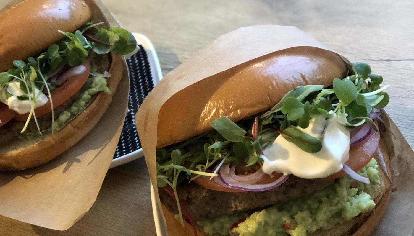 - Fyll ditt favorit hamburgarbröd med avocadoröra, svartbönsbiff, tomat, rödlök och majonnäs.