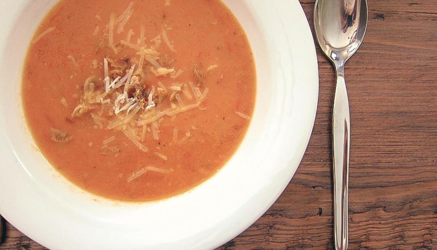 Servera tomatsoppan som förrätt eller som huvudrätt, varm eller kall.