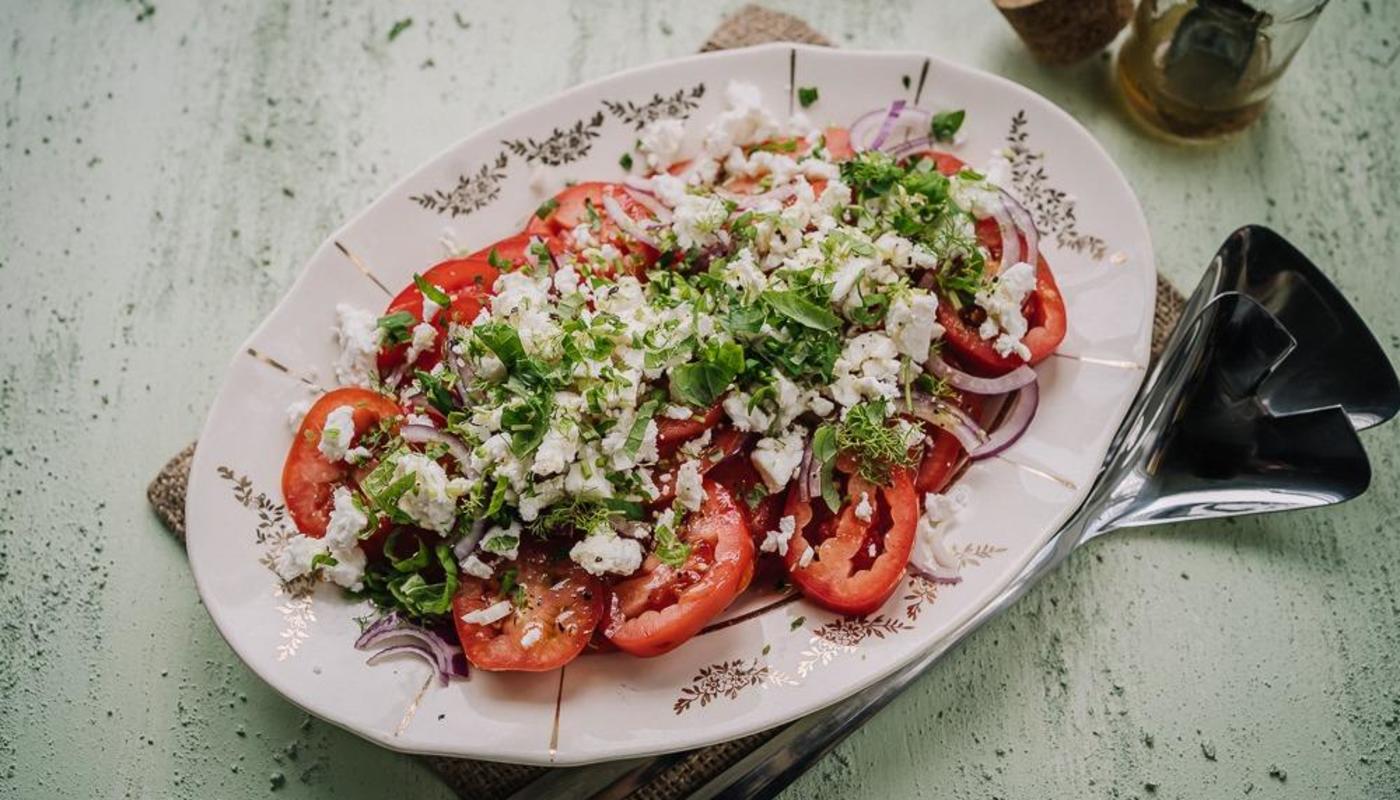 Yrttinen tomaatti-fetasalaatti
