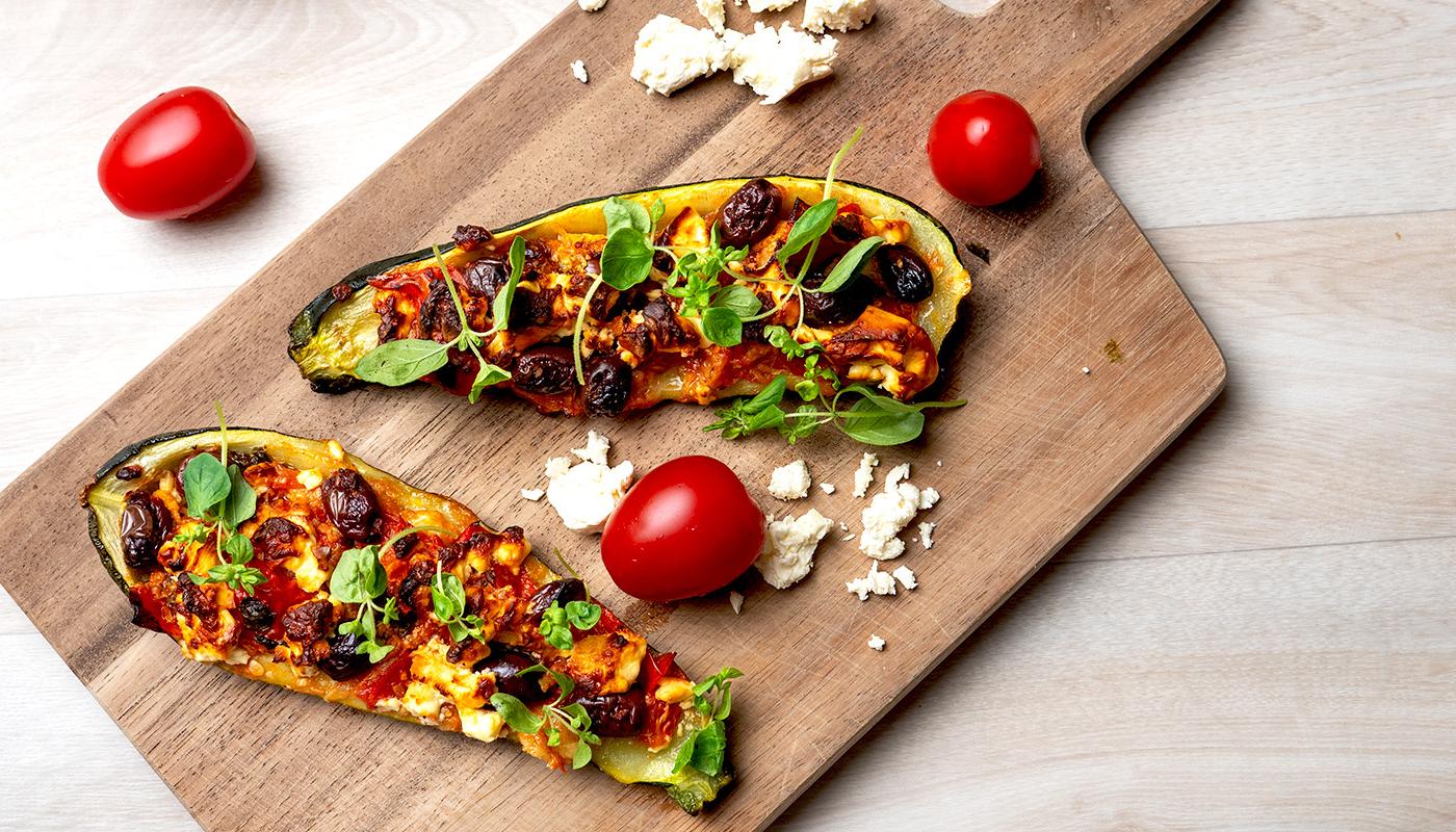 - Koverra lusikalla kesäkurpitsoista sisus pois.