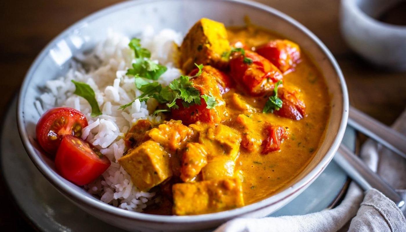 Kermainen ja täyttävä intialainen annos tofulla ja Dunne-tomaateilla.