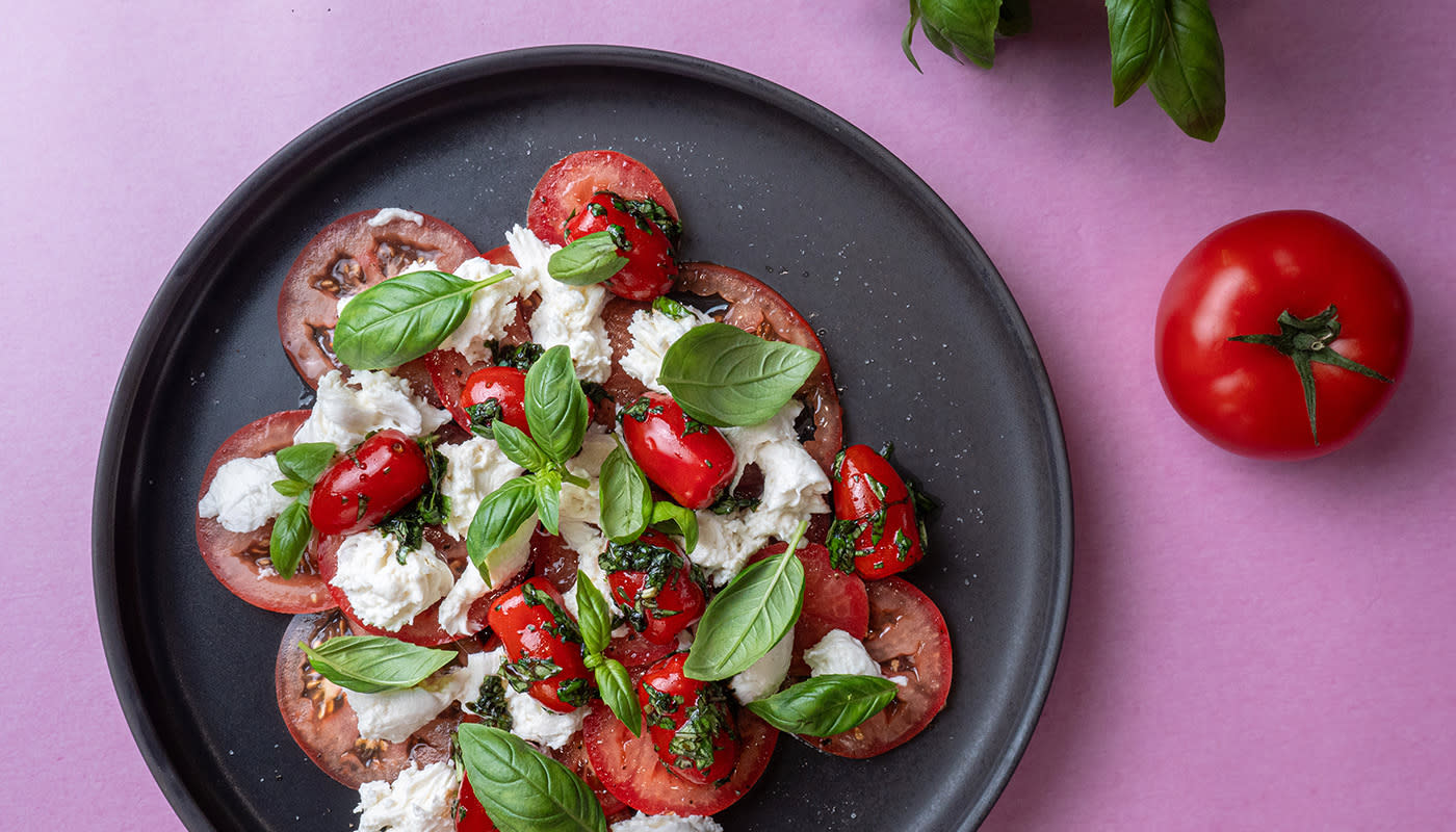 Tomaatti-mozzarellasalaatti ja basilikavinegretti