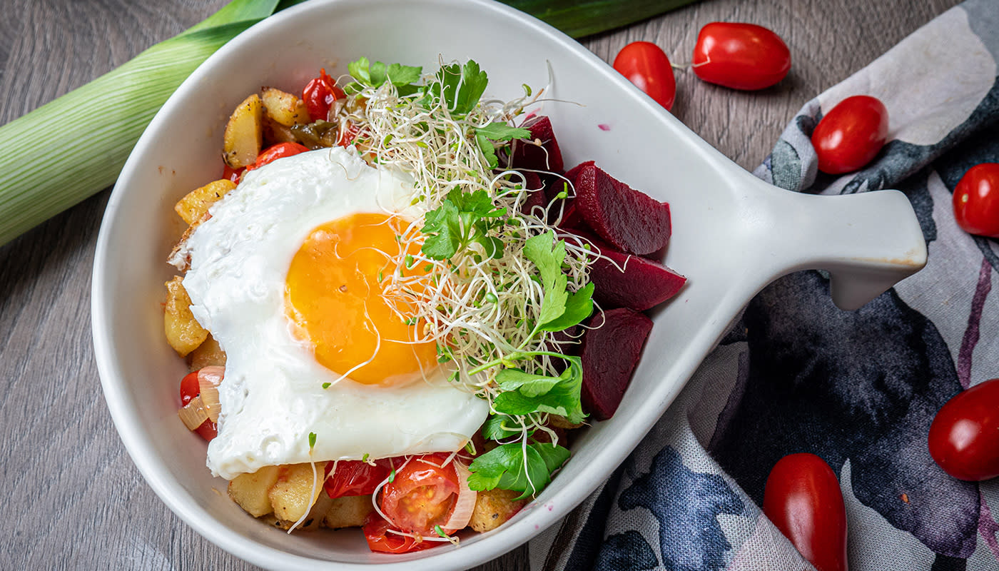- Tarjoile paistettujen kananmunien, itujen, tuoreen lehtipersiljan, ketsupin, kurkkusalaatin ja etikkapunajuurien kanssa.