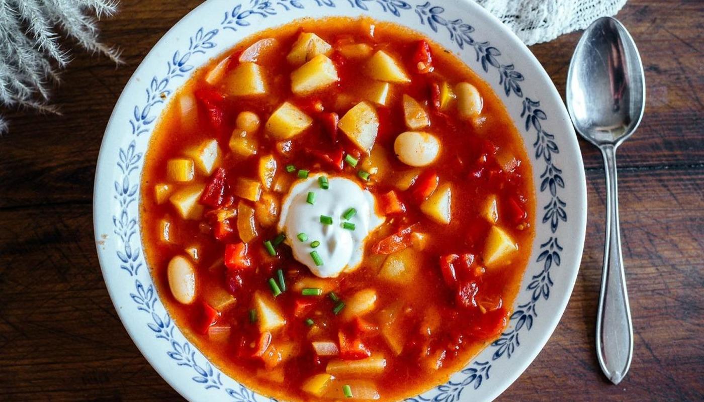 Täyteläinen, unkarilainen keitto paprikalla ja tomaatilla.